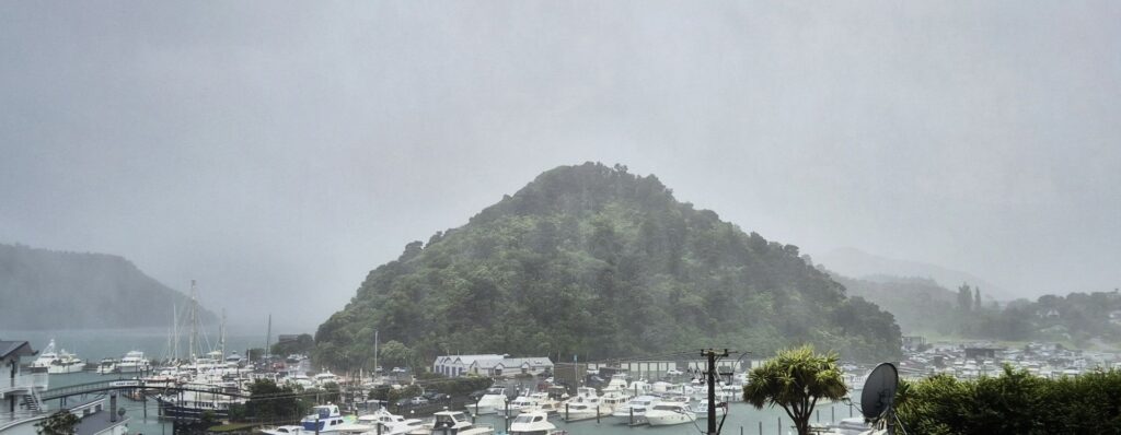 Having seen the weather forecast – strong wind, choppy seas, rain, and cool temperatures, and after receiving an email from the ferry people warning that the sailing might be delayed or cancelled, – we decided not to risk a delay and sea sickness, and instead bought tickets to fly from Wellington to Blenheim.