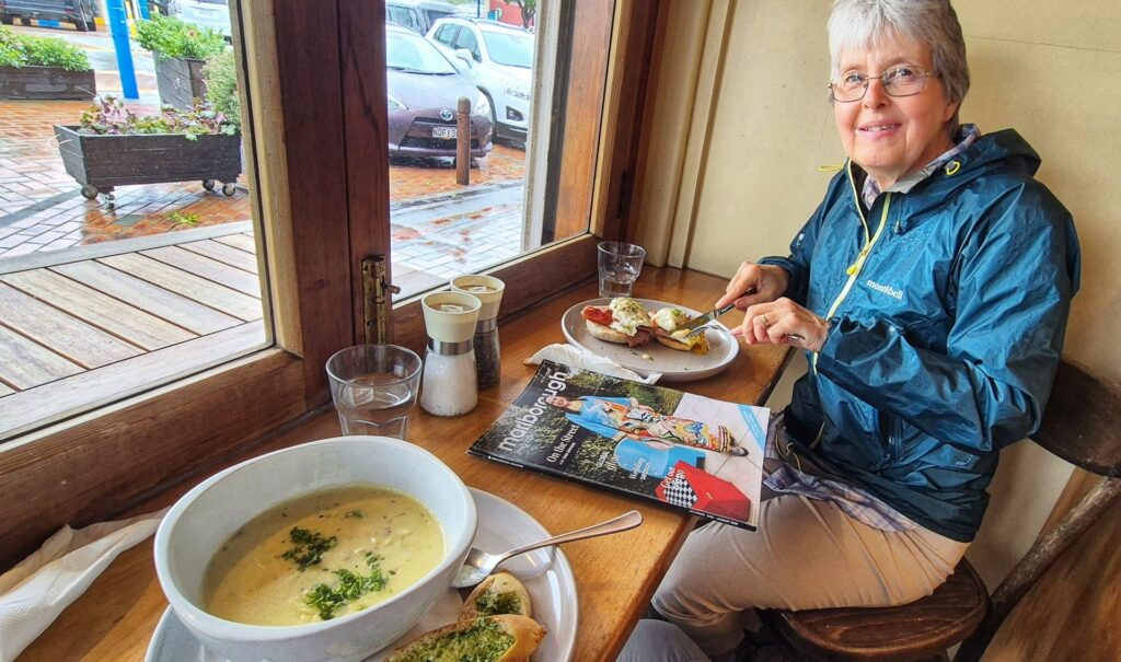 The small boat taking us to the start of the trail at Ship Cove leaves at 9.30 am, so we should have time to grab a bite of brekky before we head out.