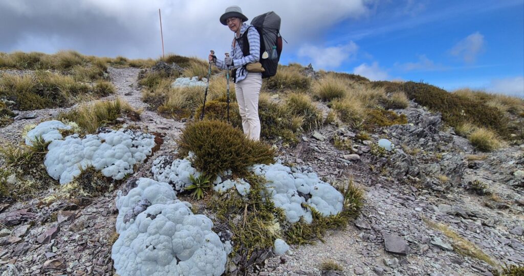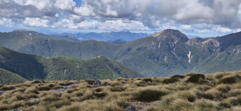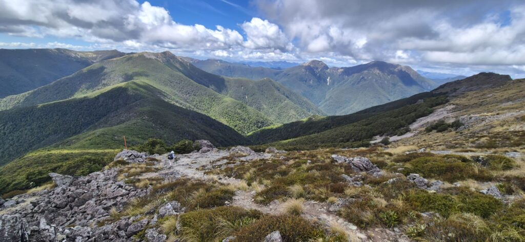 The group of 4 from Ireland had decided to hike on to the next hut last night so we said goodbye and do not expect to see them again unless they take a couple of days off in St Arnaud. We both slept well in our tent and again were packed up and on the trail soon after 6am.