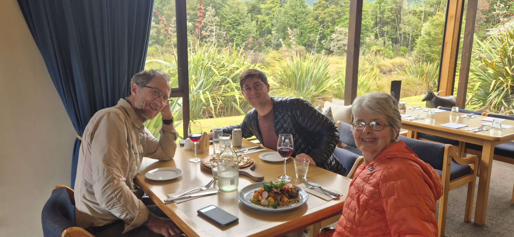 Another very relaxing day was spent mostly indoors keeping dry. We met up with Pete who arrived mid morning, and checked into our room at the lodge when it became available at 2 pm. Some of the waiting time was passed at the DOC centre, reading about the area and checking once again on the forecast and safety issues on the trail ahead.