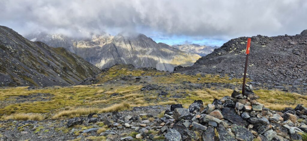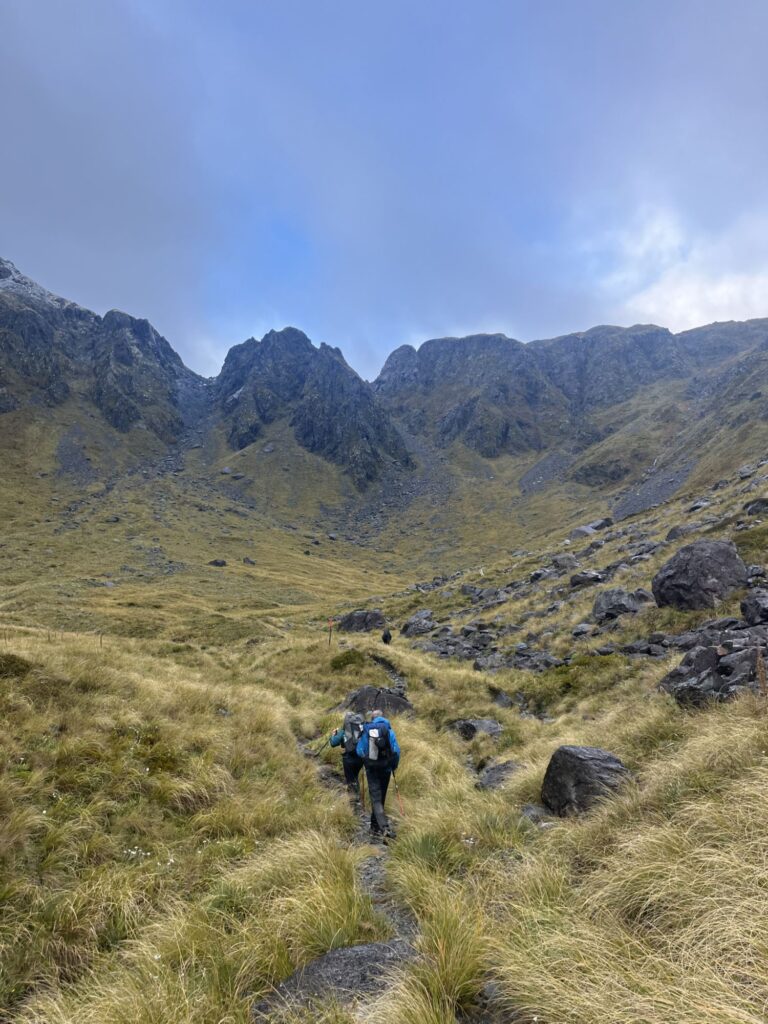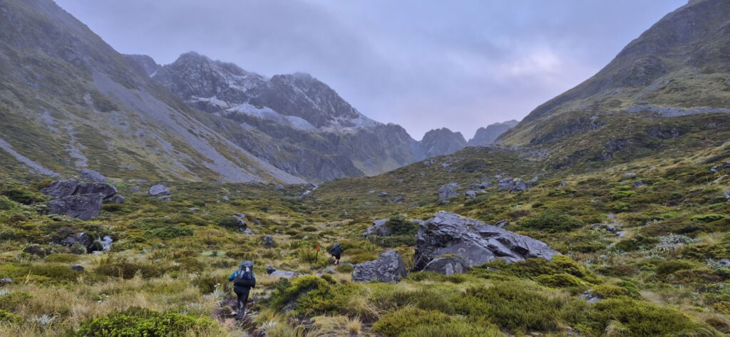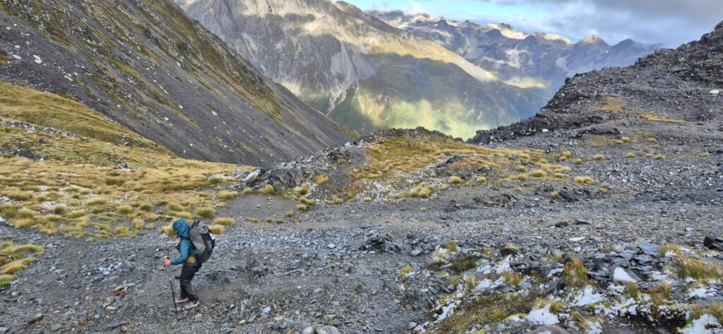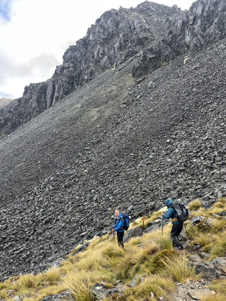 We made it finally to Blue Lake Hut where we are sitting down to dinner and catching up with news from Stu and Don. We booked bunks in this hut but Pete has opted to camp. Tomorrow will be a big day – another steep climb with some exposed sections and a steep difficult descent. Hopefully we sleep well tonight.