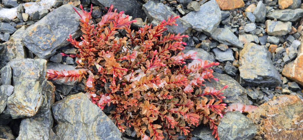 With a long ascent on the agenda for today, we were up early and out of the warmth of the hut by 6.30, trudging up to the saddle. Each marker in front looked to be the top and each time we reached the marker, another loomed up ahead. As we finally summited, the sky was clear enough to offer snowy mountaintop views.