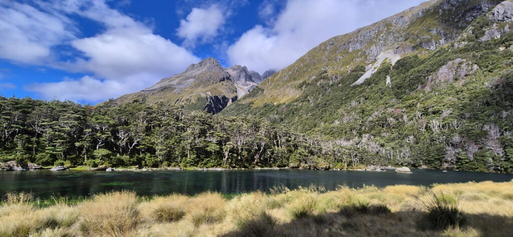 After a long 6 hours we arrived at West Sabine Hut where we sat on the porch and ate our lunch. The sun was out and we had started to warm up. After food we had enough energy to push on to the next hut which is located close to Blue Lake – some of the most pristine water in the world. We had to spray shoes and any gear that might be contaminated with algae before leaving the shores of Rotoiti Lake.
